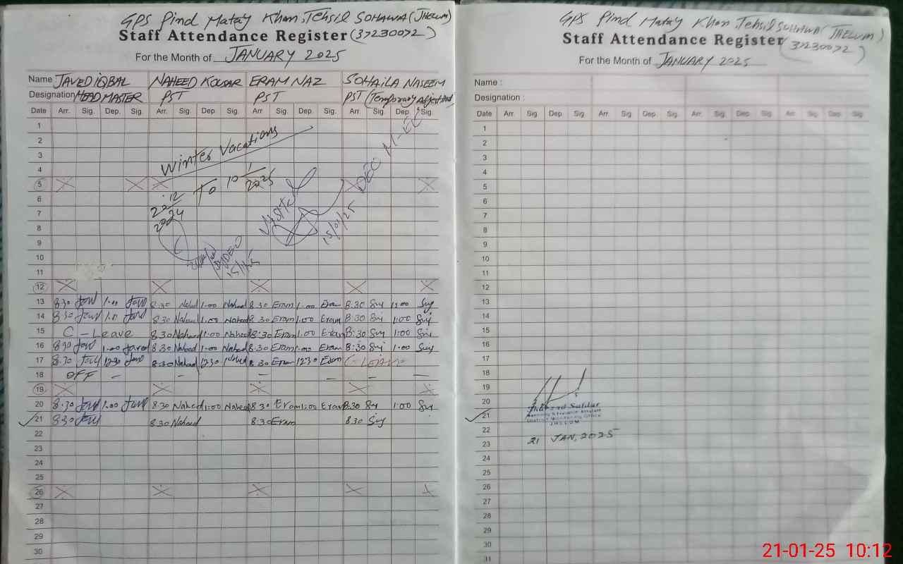 | Name: Ja**** Iq**** Designation: (School Headmaster's/Headmistress's) Pst Phone/Cell Number: 03**** |