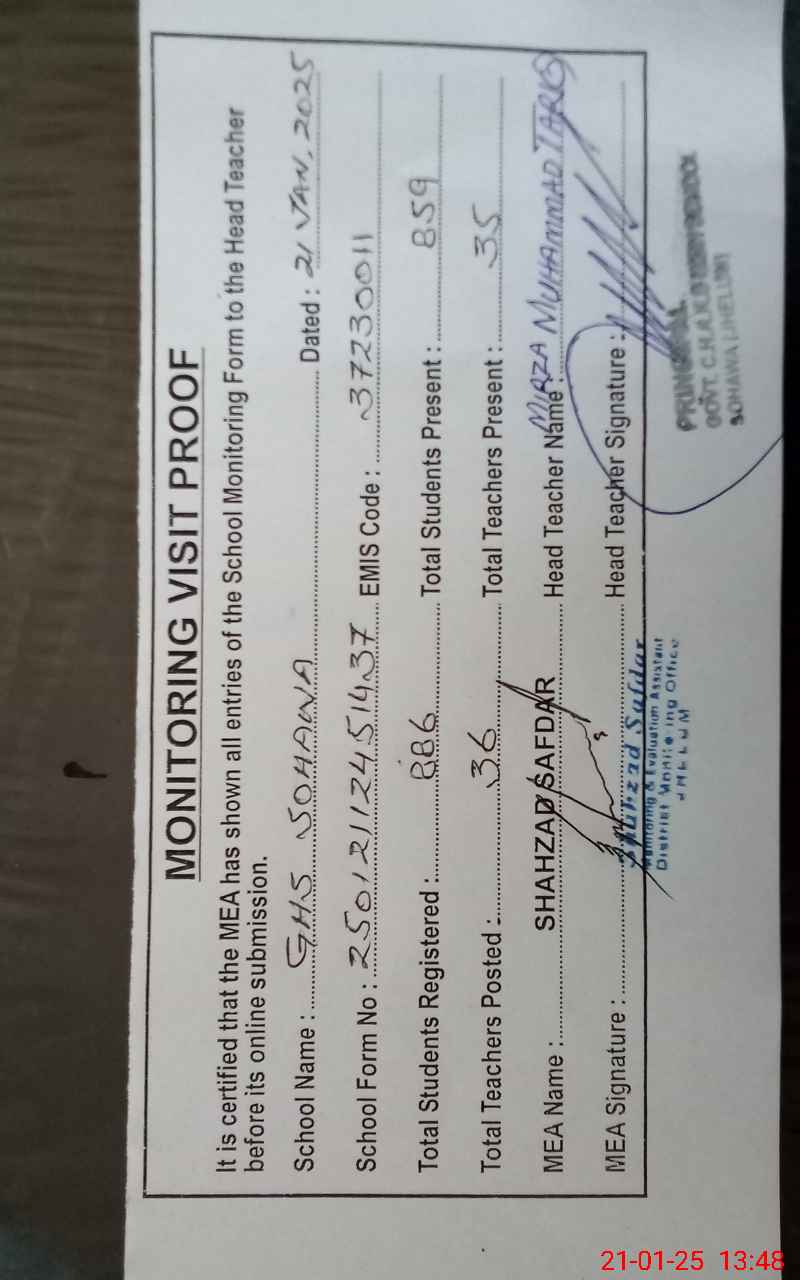 | EMIS Code: 37230011 | Name of School: GHS CAPTAIN HASNAT SHAHEED SOHAWA | |||