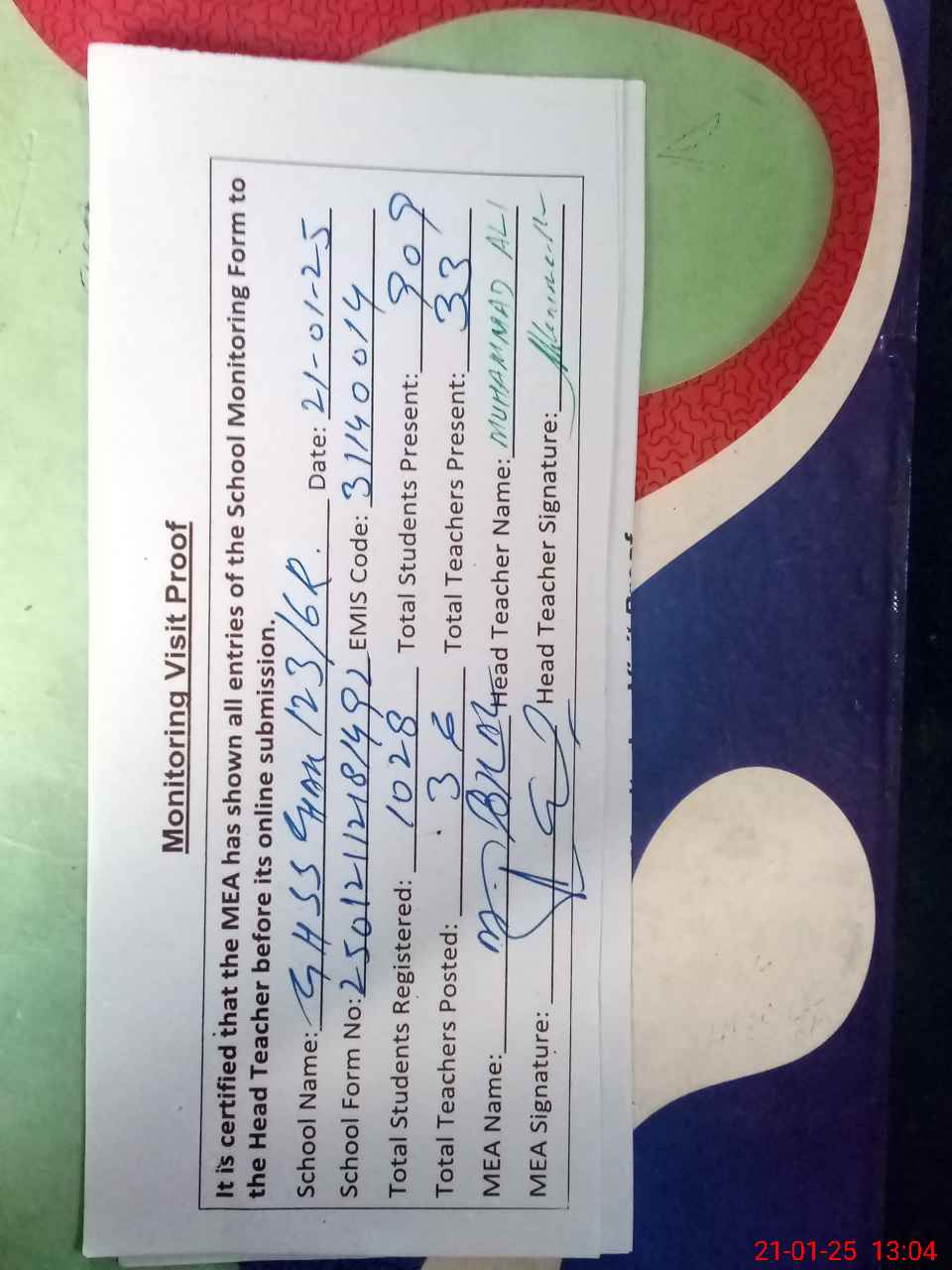 | EMIS Code: 31140014 | Name of School: GHSS CHAK 123/6-R | |||