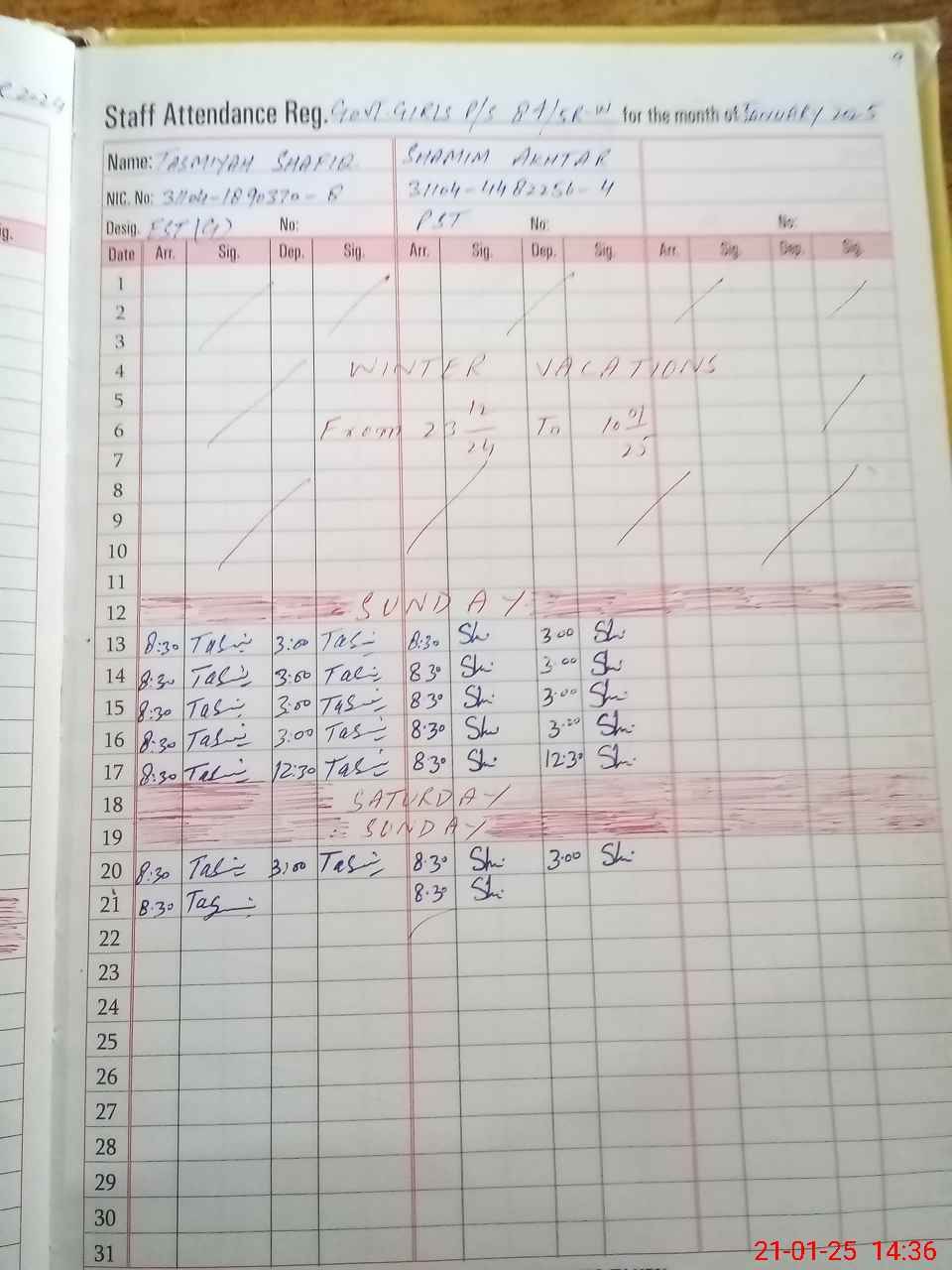 | CNIC | Full Name | Designation | R/C | Absence During Last Calender Month |