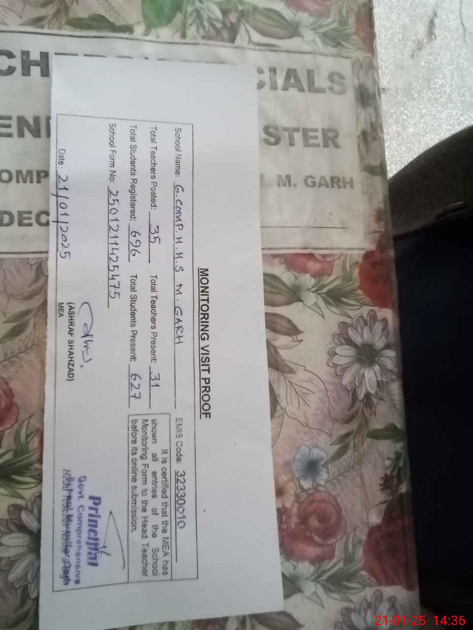 | EMIS Code: 32330010 | Name of School: GHS COMPREHENSIVE MUZAFFARGARH | |||