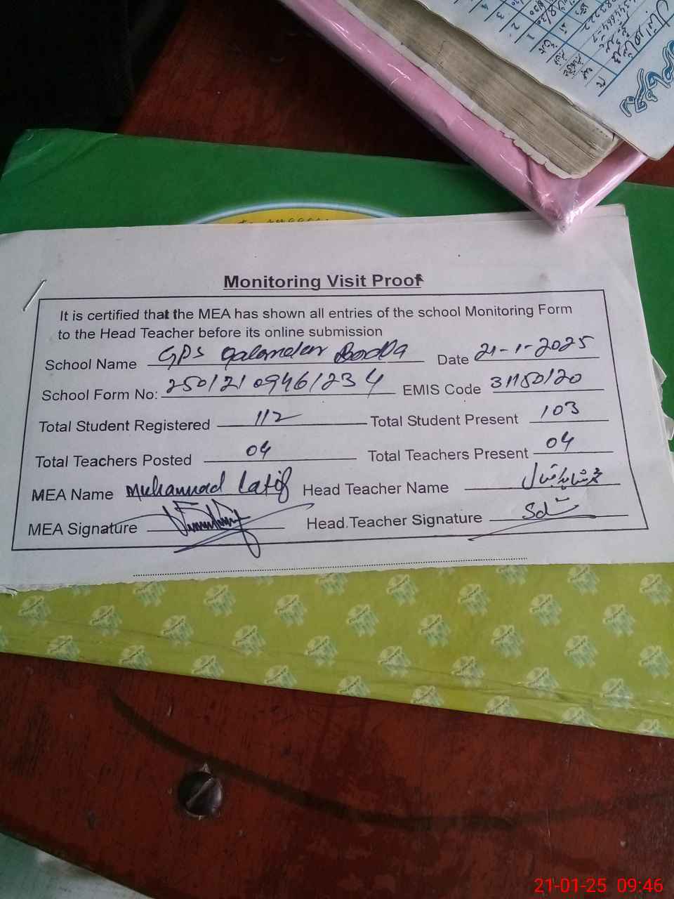 | EMIS Code: 31150120 | Name of School: GPS QALANDAR BODLA | |||