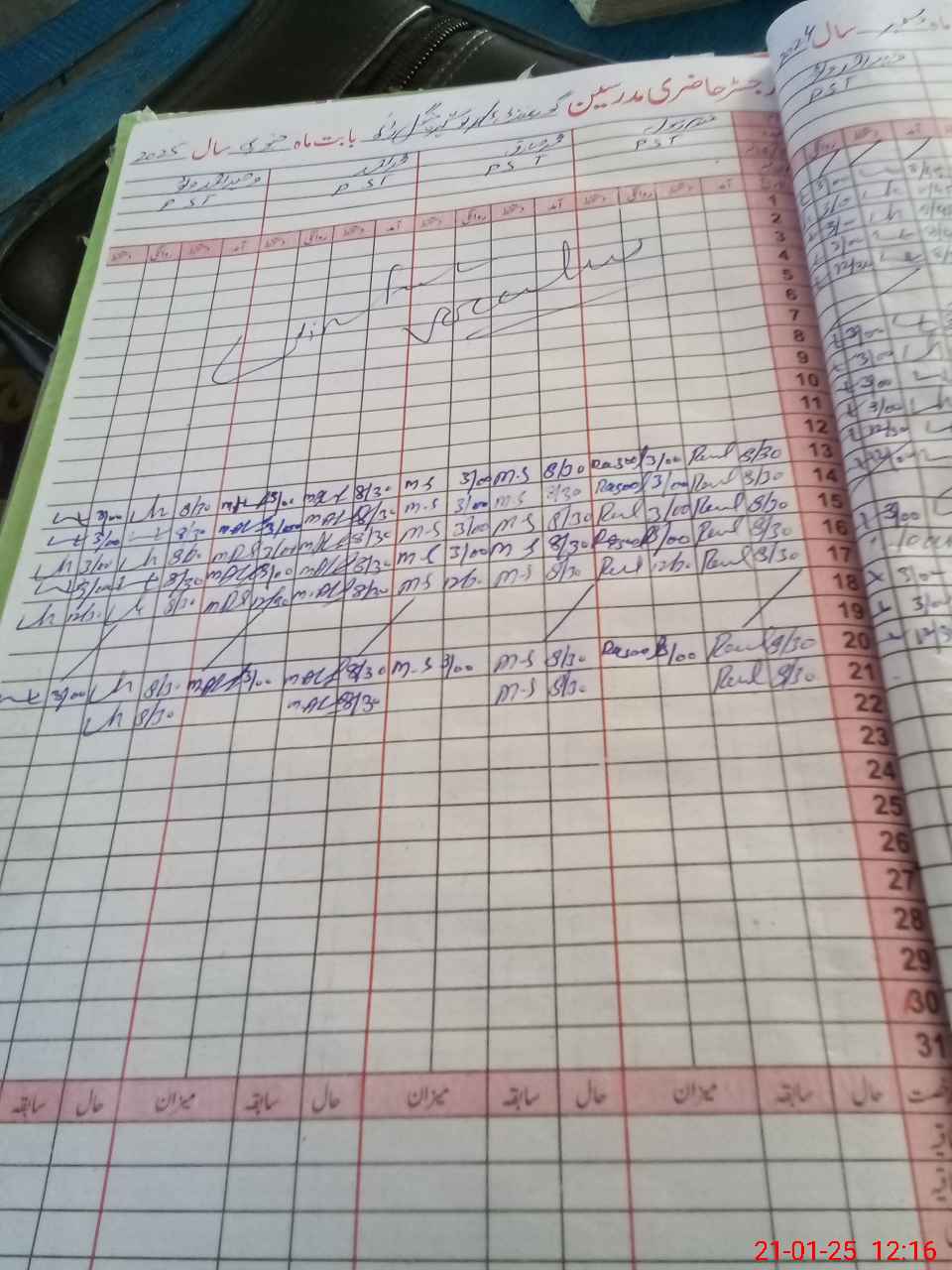 | CNIC | Full Name | Designation | R/C | Absence During Last Calender Month |