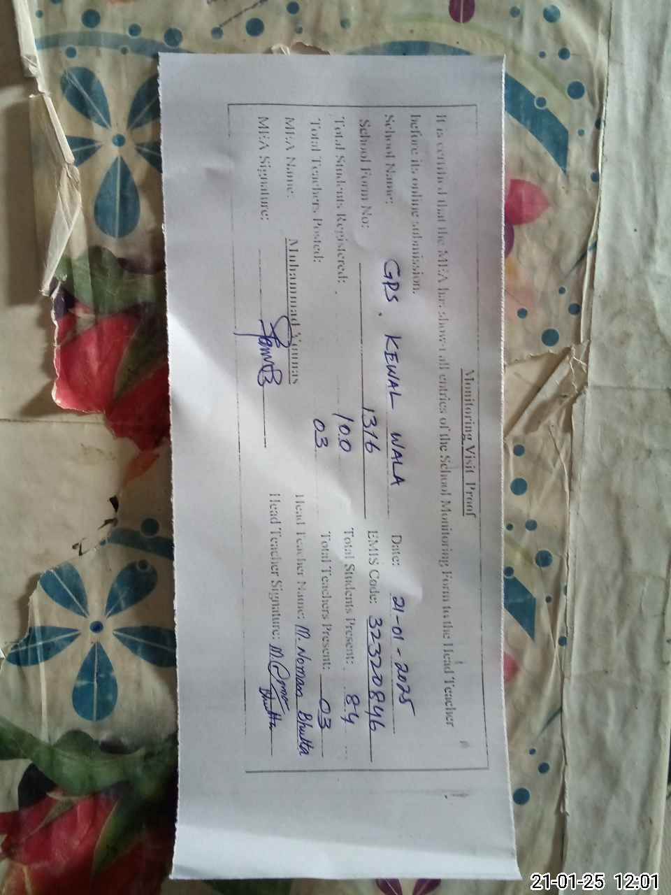 | EMIS Code: 32320846 | Name of School: GPS KEWAL WALA | |||