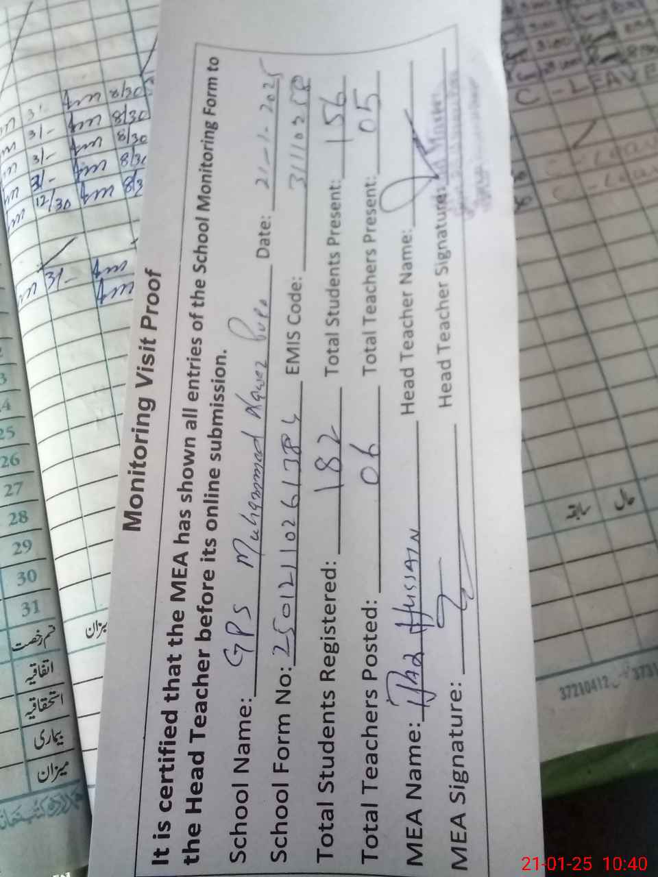 | EMIS Code: 31110258 | Name of School: GPS MUHAMMAD NAWAZ PURA | |||
