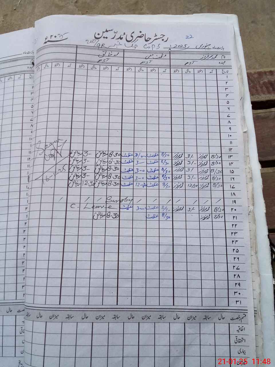 | CNIC | Full Name | Designation | R/C | Absence During Last Calender Month |