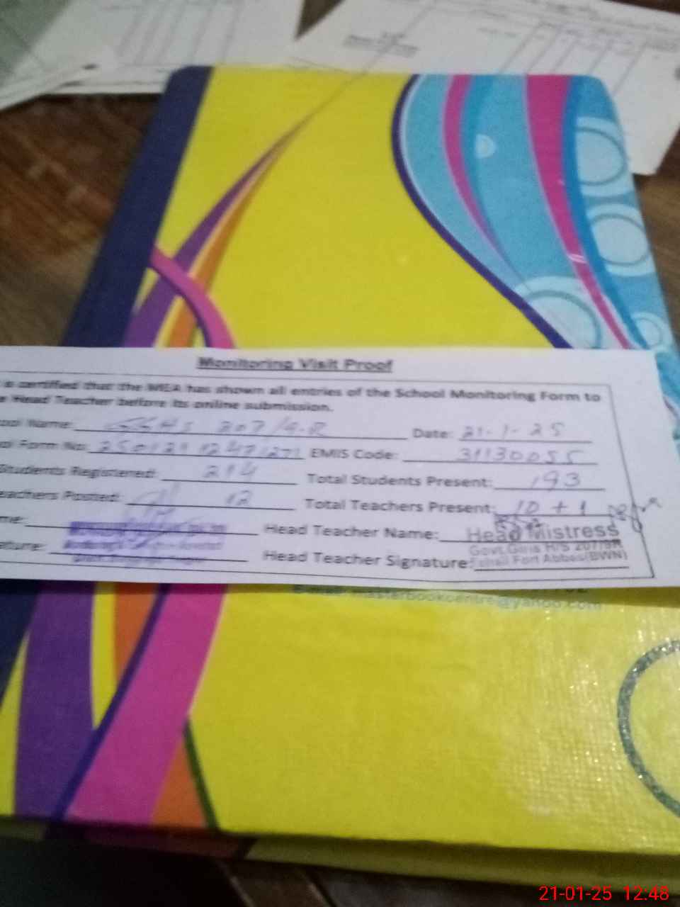 | Name: Ta**** Ko**** Designation: (School Headmaster's/Headmistress's) S.S.E PHY Phone/Cell Number: 03**** |