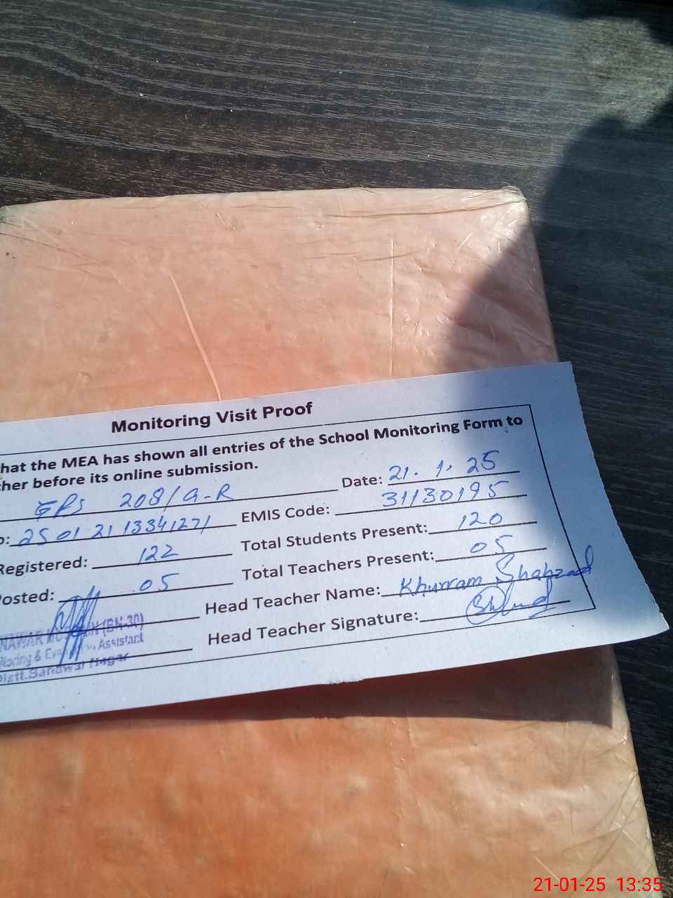 | Attendance Register | Head Teacher | MEA with School | Visit Proof |