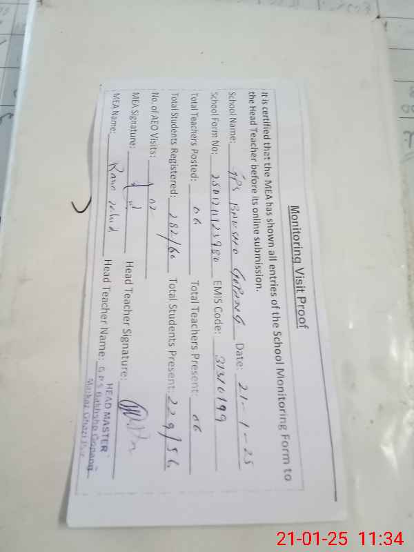 | EMIS Code: 31310199 | Name of School: GPS BAKHSHO GOPANG (After Noon) | |||