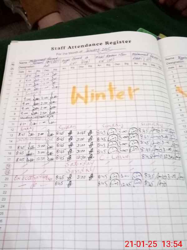 | CNIC | Full Name | Designation | R/C | Absence During Last Calender Month |