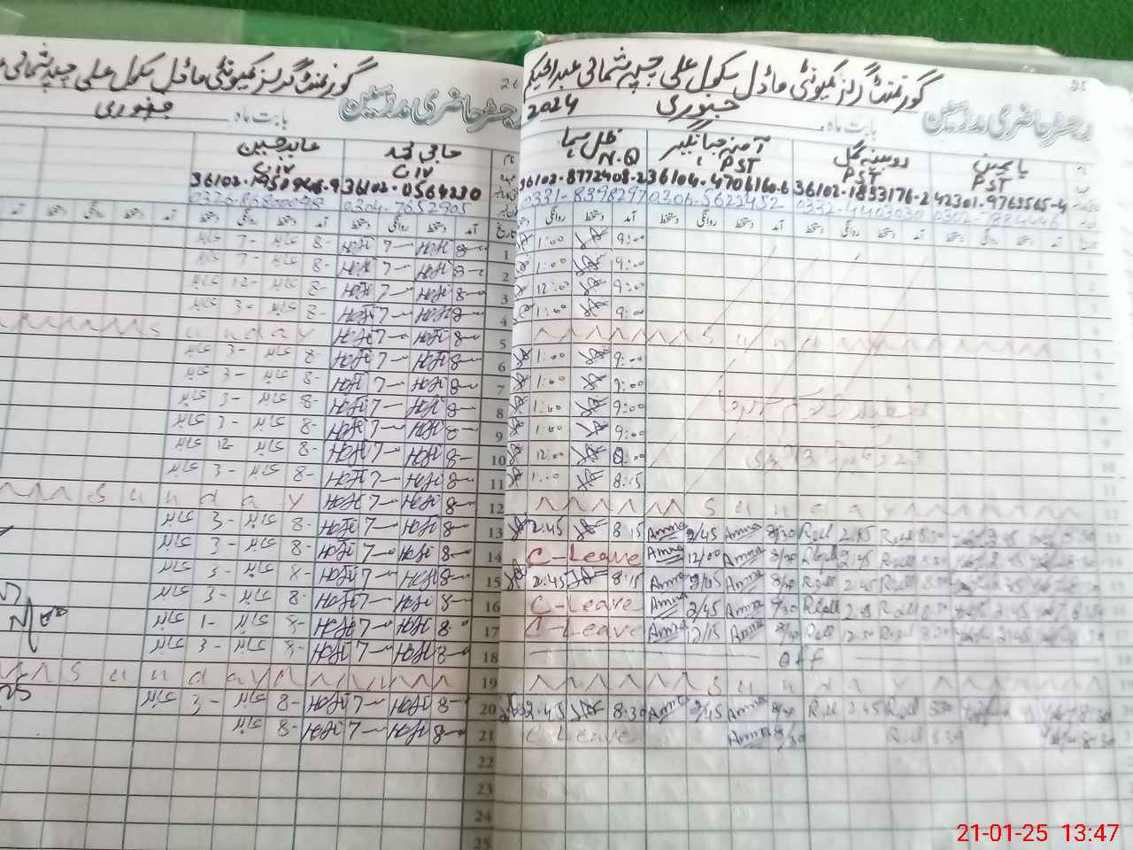 | CNIC | Full Name | Designation | R/C | Absence During Last Calender Month |