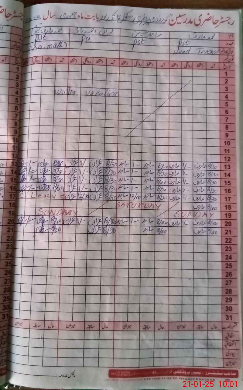 | Name: MU**** AR**** Designation: (School Headmaster's/Headmistress's) PST Phone/Cell Number: 03**** |