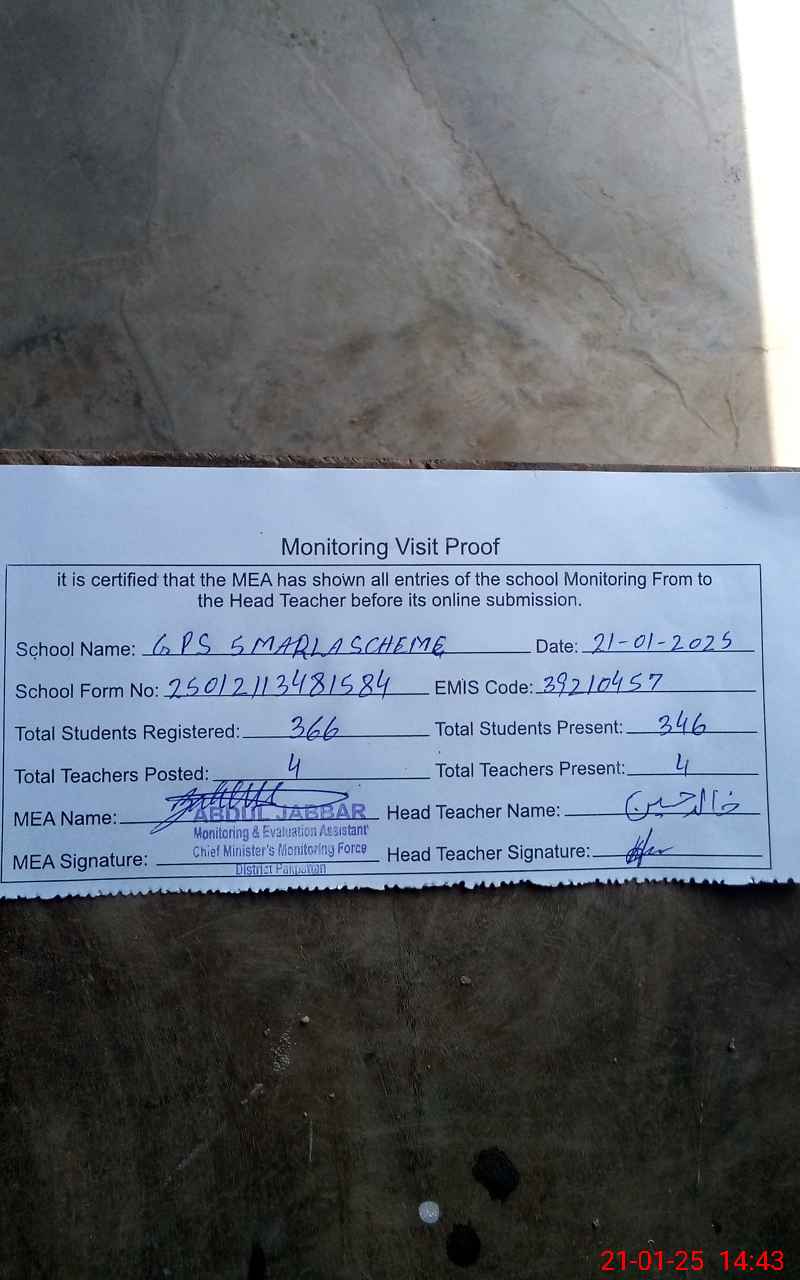 | EMIS Code: 39210457 | Name of School: GPS 5-MARLA SCHEME ADDA CHAK BEDI | |||
