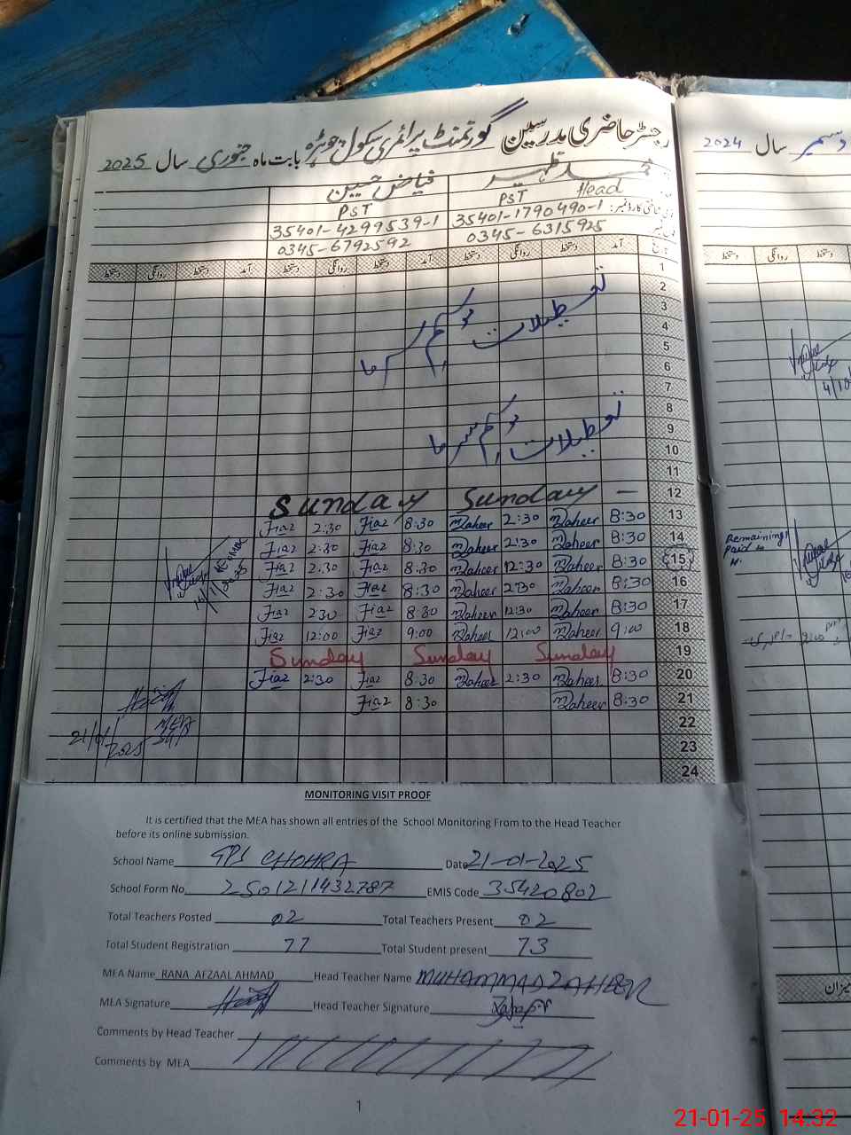 | EMIS Code: 35420802 | Name of School: GPS CHOHRA | |||