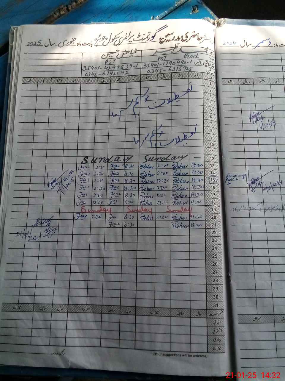 | Name: Mu**** Za**** Designation: (School Headmaster's/Headmistress's) PST Phone/Cell Number: 03**** |