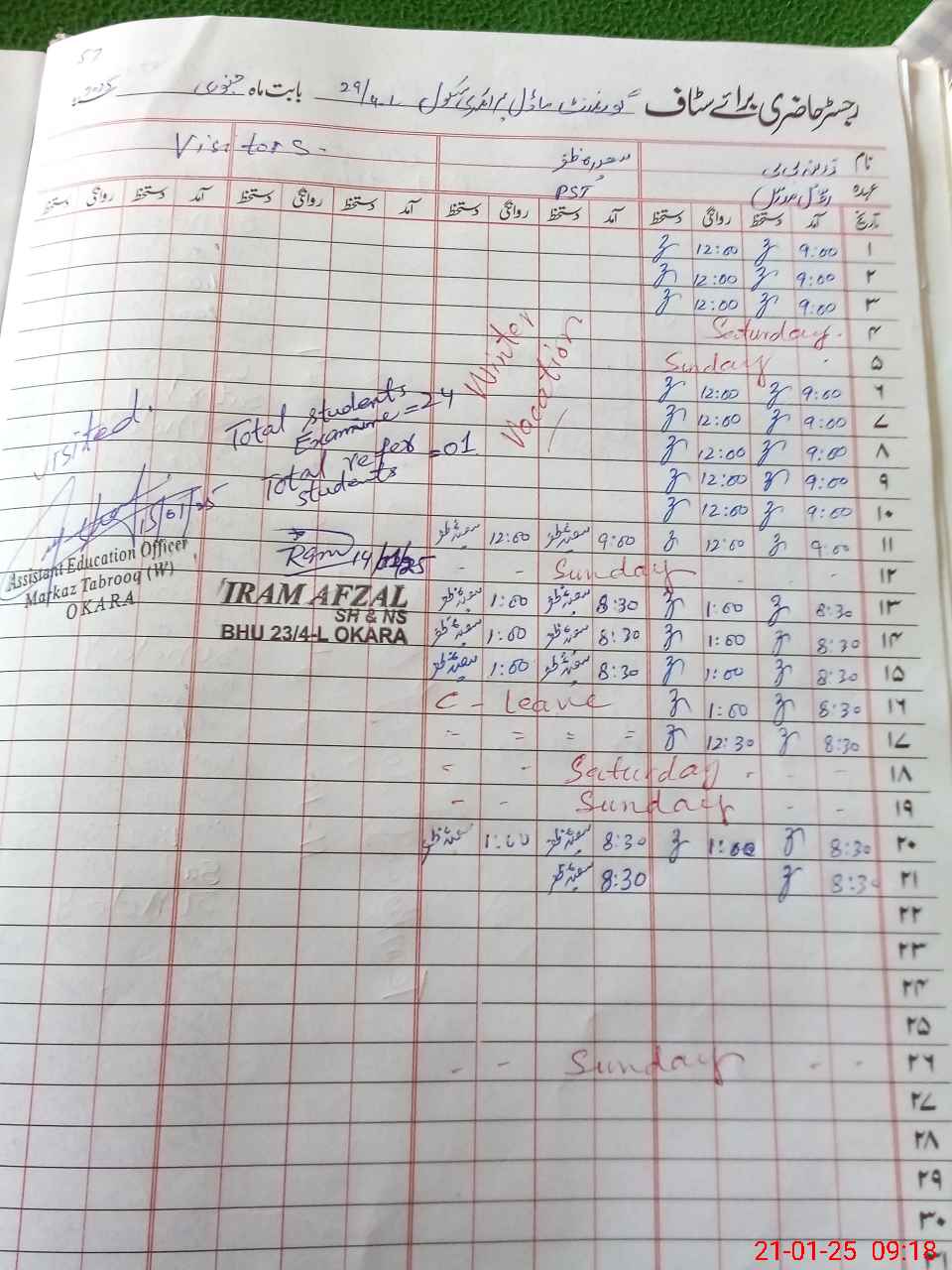 | Name: Za**** Bi**** Designation: (School Headmaster's/Headmistress's) PST Phone/Cell Number: 03**** |
