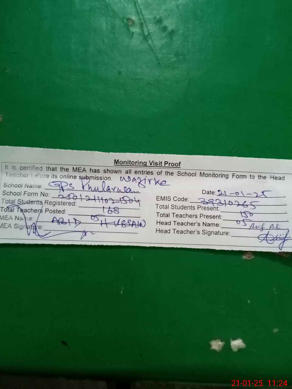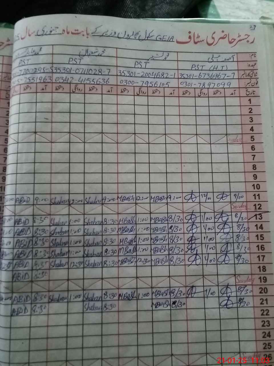 | Name: AS**** AL**** Designation: (School Headmaster's/Headmistress's) PST Phone/Cell Number: 03**** |