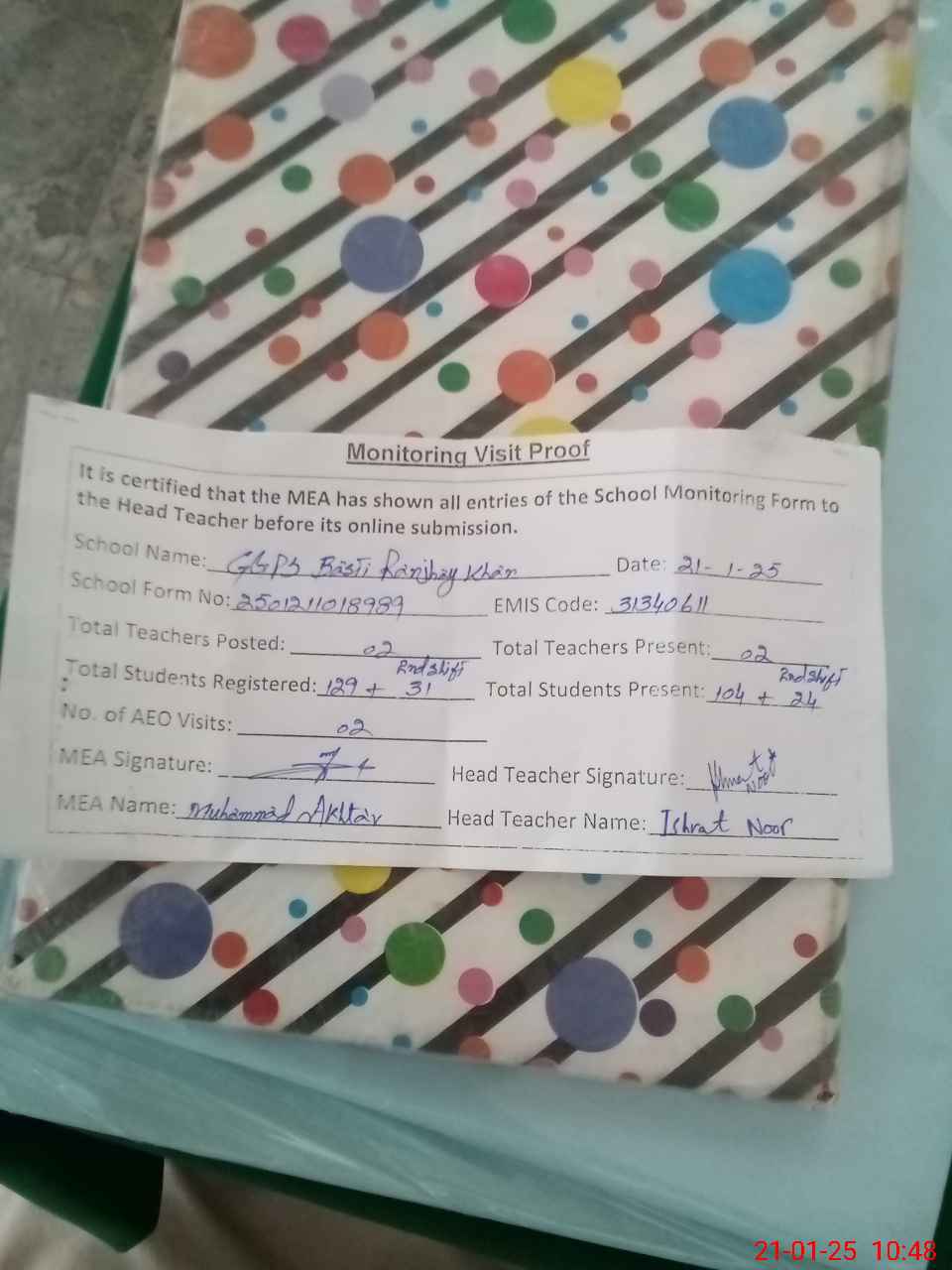 | EMIS Code: 31340611 | Name of School: GGPS BASTI RANJHAY KHAN | |||