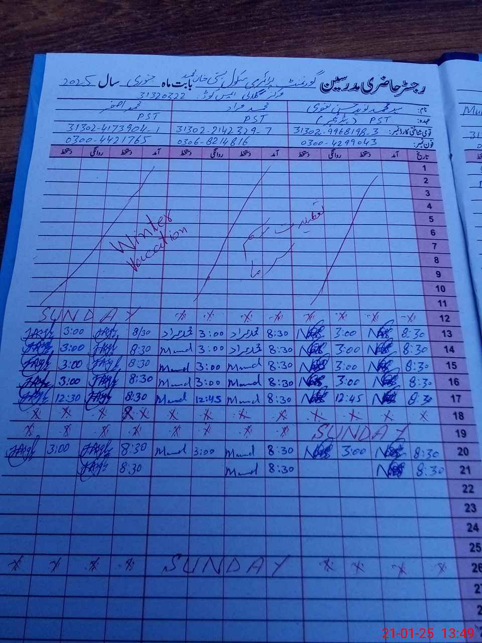 | Name: SY**** MU**** NA**** HU**** NA**** Designation: (School Headmaster's/Headmistress's) PST Phone/Cell Number: 03**** |