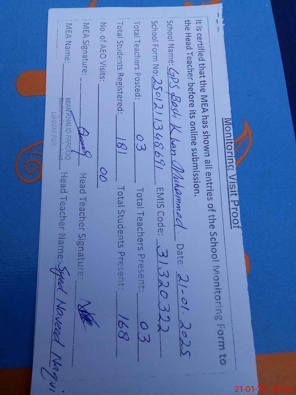 | EMIS Code: 31320322 | Name of School: GPS BASTI KHAN MUHAMMAD | |||