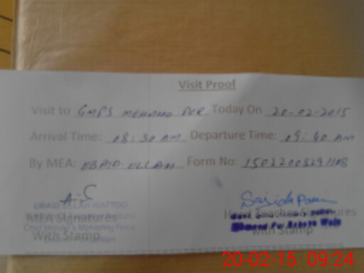| Attendance Register | Head Teacher | MEA with School | Visit Proof |