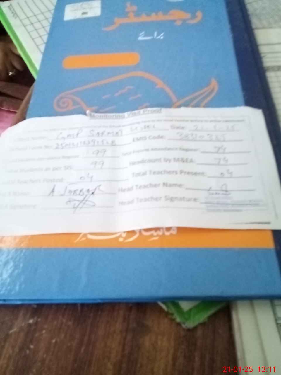 | EMIS Code: 38310325 | Name of School: GMPS SARMAT KHEL | |||