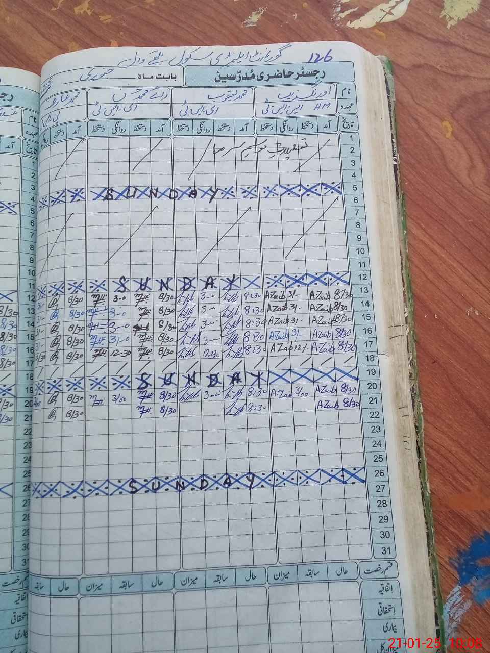 | CNIC | Full Name | Designation | R/C | Absence During Last Calender Month |
