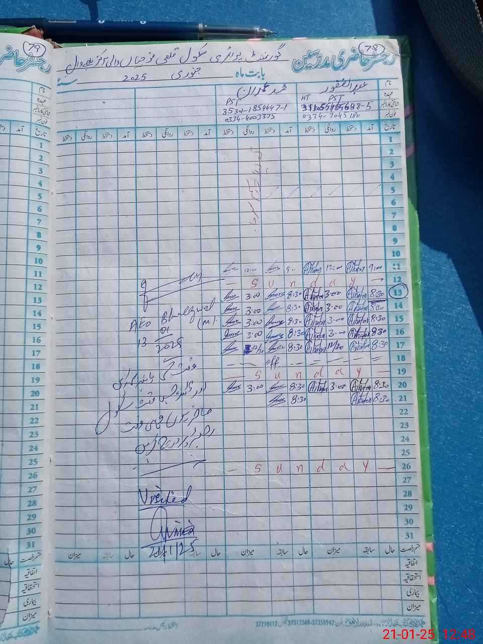 | Name: Ab**** Gh**** Designation: (School Headmaster's/Headmistress's) PST Phone/Cell Number: 03**** |