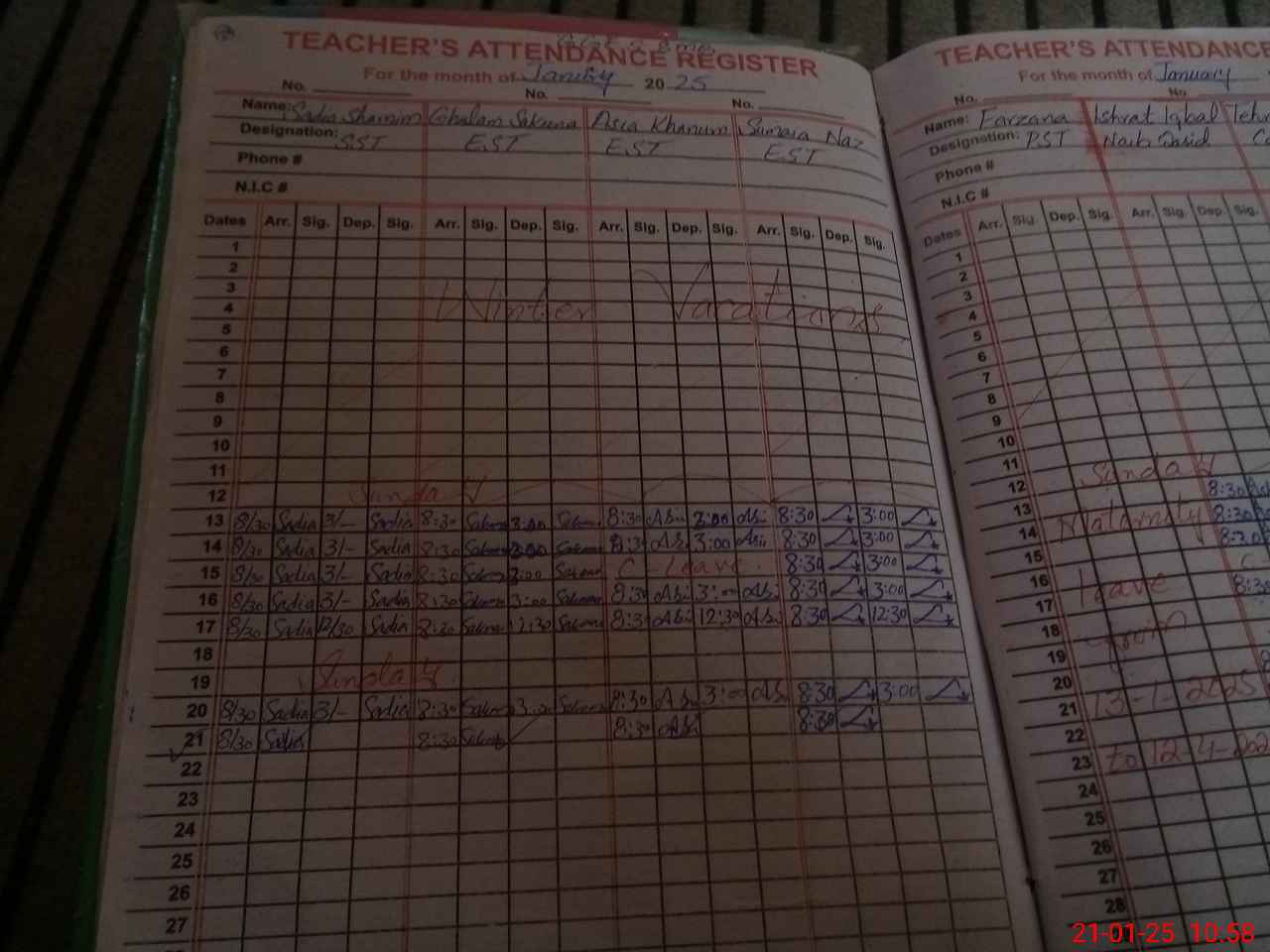 | CNIC | Full Name | Designation | R/C | Absence During Last Calender Month |