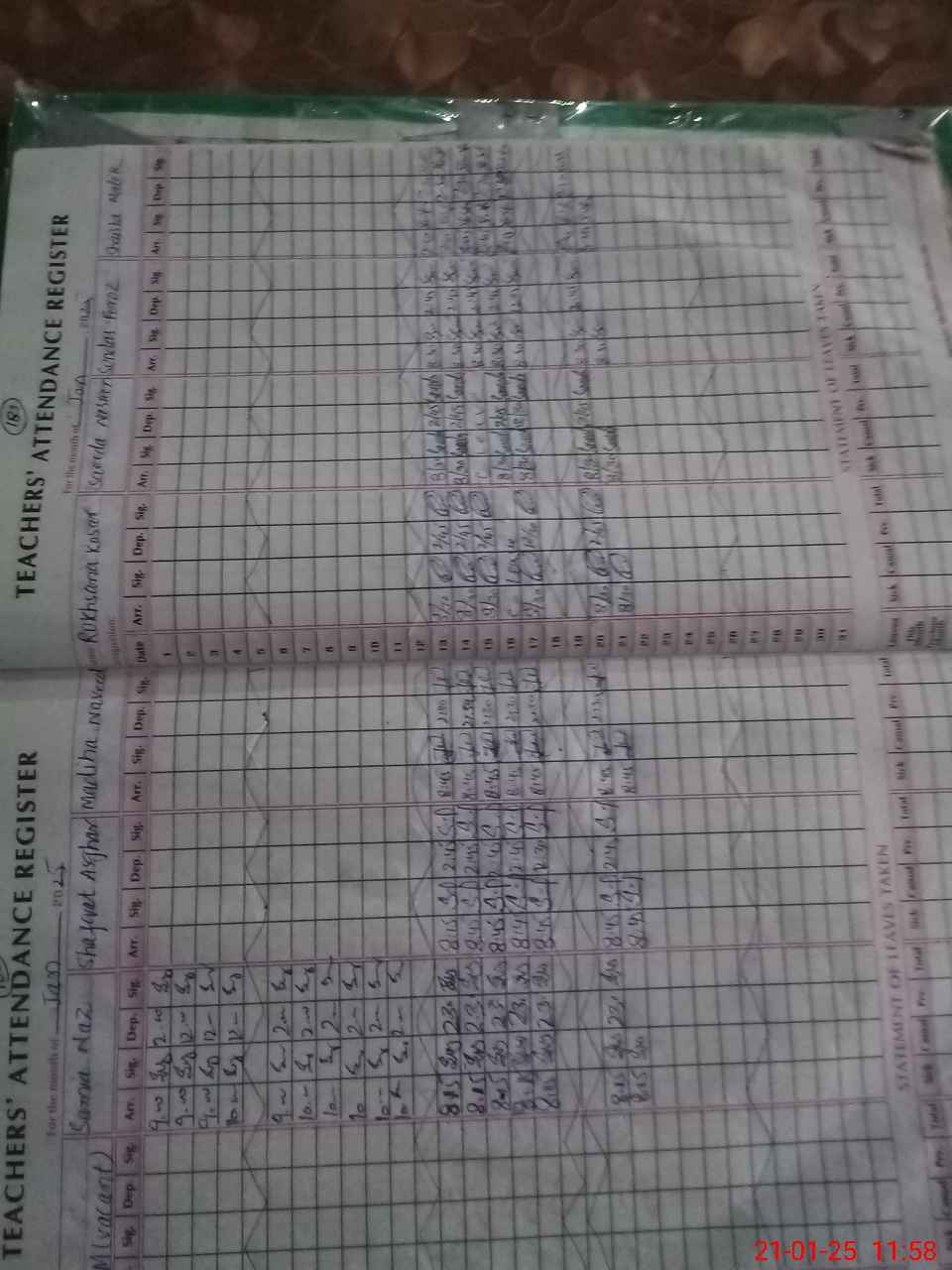 | CNIC | Full Name | Designation | R/C | Absence During Last Calender Month |