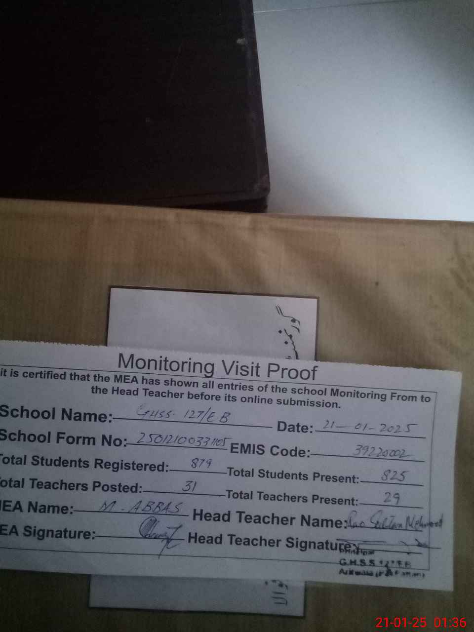 | EMIS Code: 39220002 | Name of School: GHSS 127/EB ARIFWALA | |||