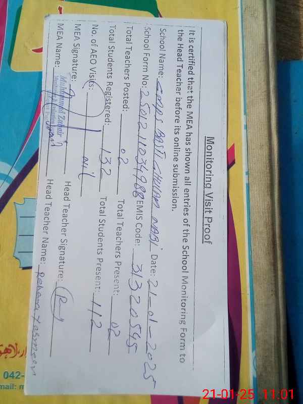 | EMIS Code: 31320545 | Name of School: GMPS BASTI GHULAM NABI | |||