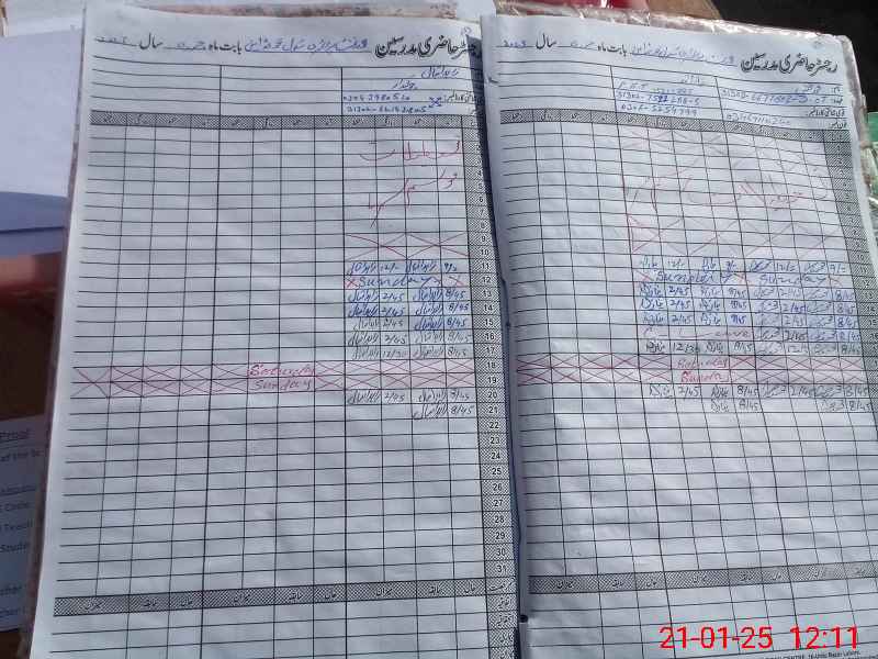 | Total no. of Classrooms: 2 No. of Classrooms Used for Teaching: 2 No. of Classrooms Storing Old Furniture, FTBs, etc: 0Comments if Any: Teachers and students presence on sis is no |