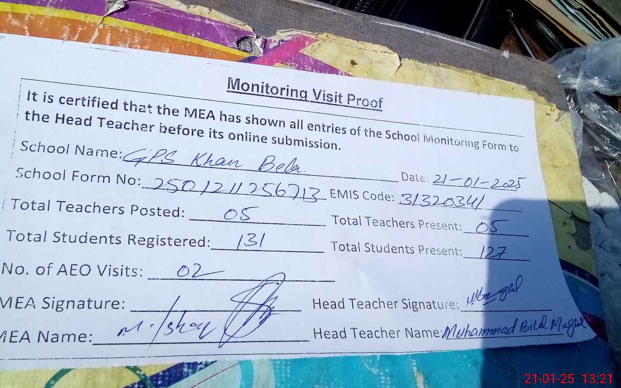| EMIS Code: 31320341 | Name of School: GPS KHAN BELLA | |||