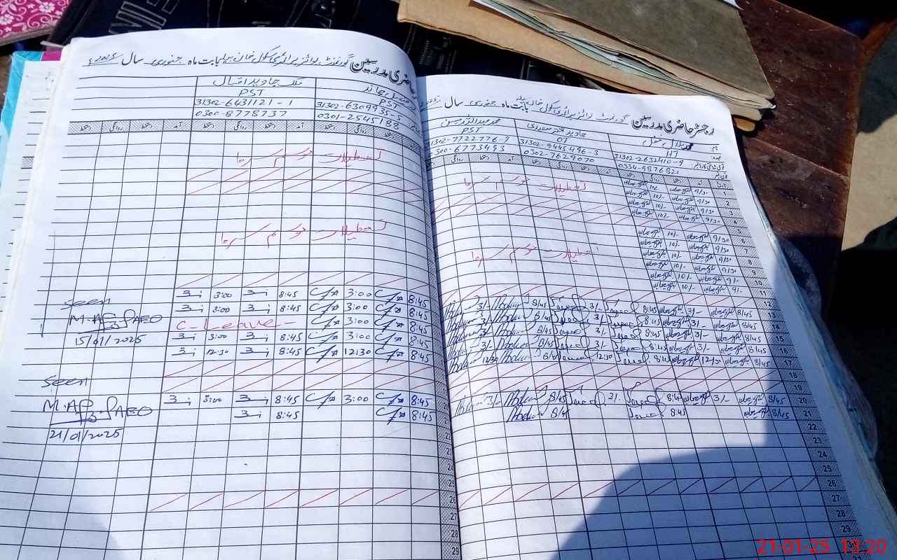 | CNIC | Full Name | Designation | R/C | Absence During Last Calender Month |