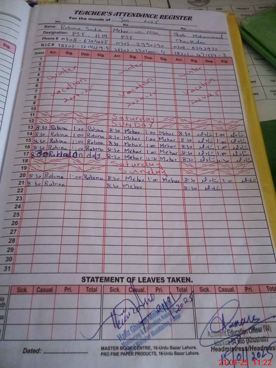 | Name: Ro**** Sa**** Designation: (School Headmaster's/Headmistress's) PST Phone/Cell Number: 03**** |