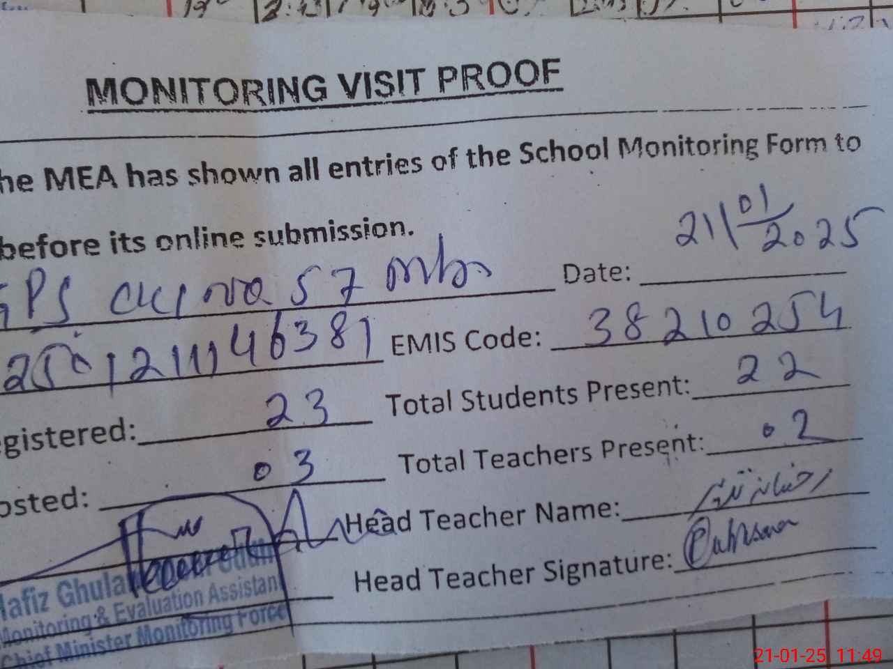 | EMIS Code: 38210254 | Name of School: GPS CHAK NO 57 MB | |||