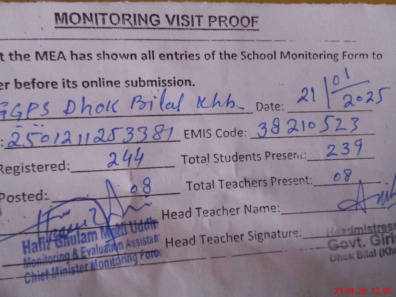 | EMIS Code: 38210523 | Name of School: GGPS DHOK BALAL KHB | |||