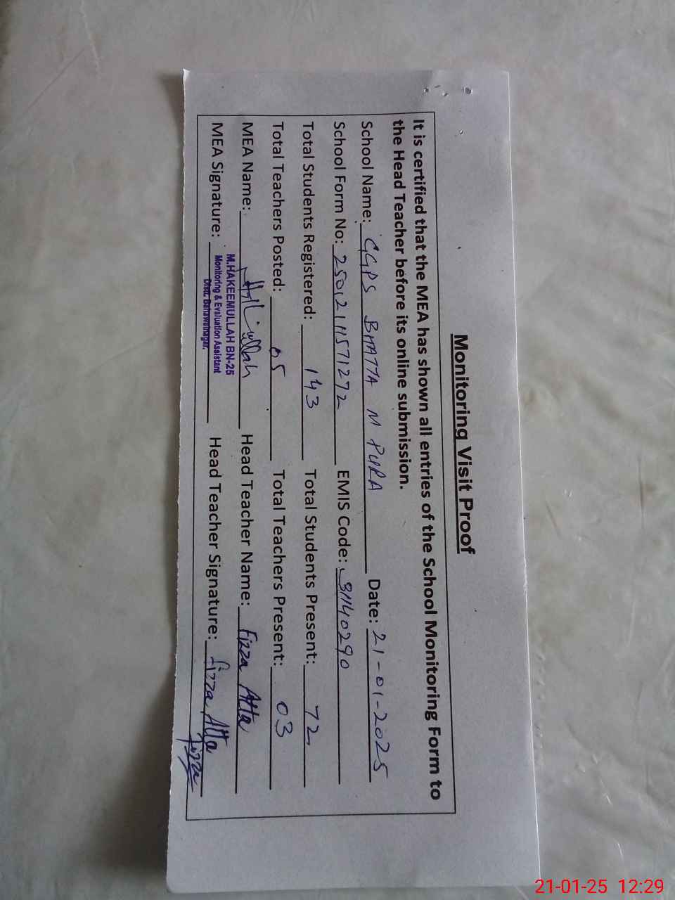 | EMIS Code: 31140290 | Name of School: GGPS BHATTA MUHAMMAD PURA | |||