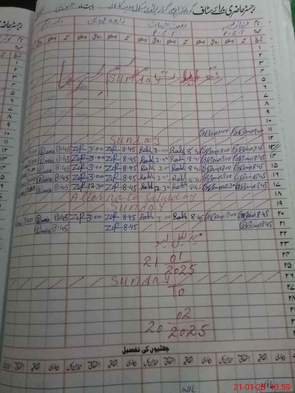 | CNIC | Full Name | Designation | R/C | Absence During Last Calender Month |