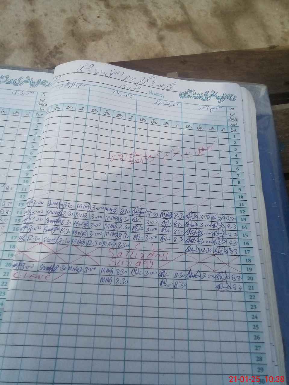 | CNIC | Full Name | Designation | R/C | Absence During Last Calender Month |