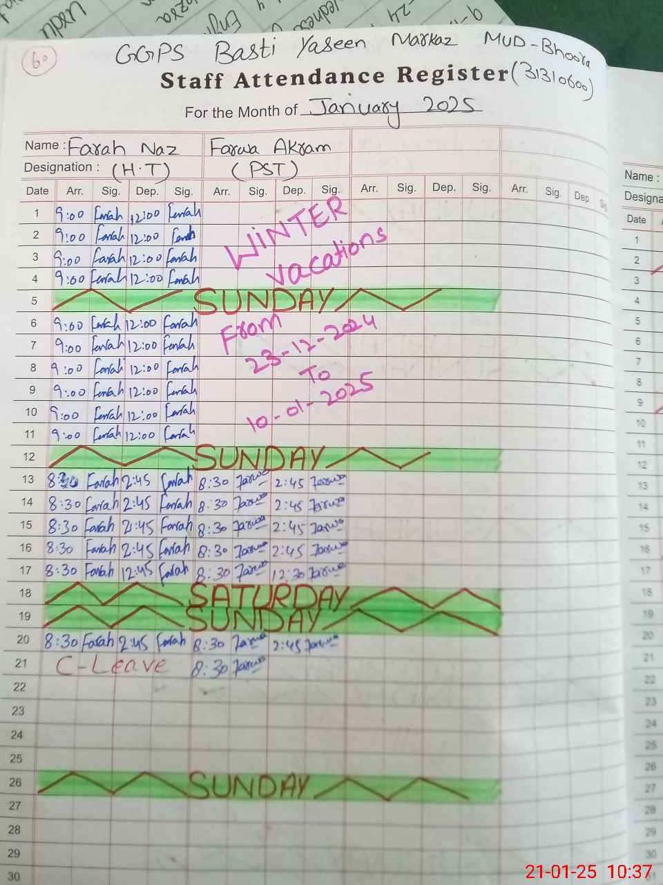 | Name: Fa**** Na**** Designation: (School Headmaster's/Headmistress's) PST Phone/Cell Number: 03**** |