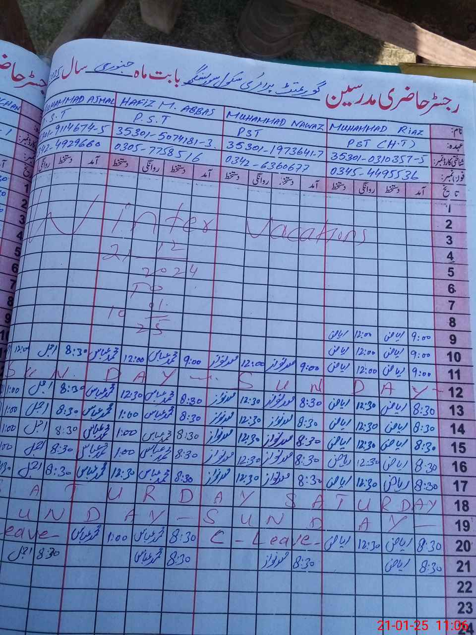 | Name: Mu**** Ri**** Designation: (School Headmaster's/Headmistress's) PST Phone/Cell Number: 03**** |