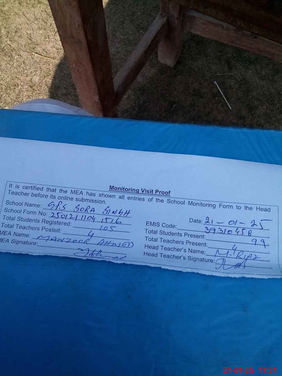 | EMIS Code: 39310458 | Name of School: GPS SORA SINGH | |||