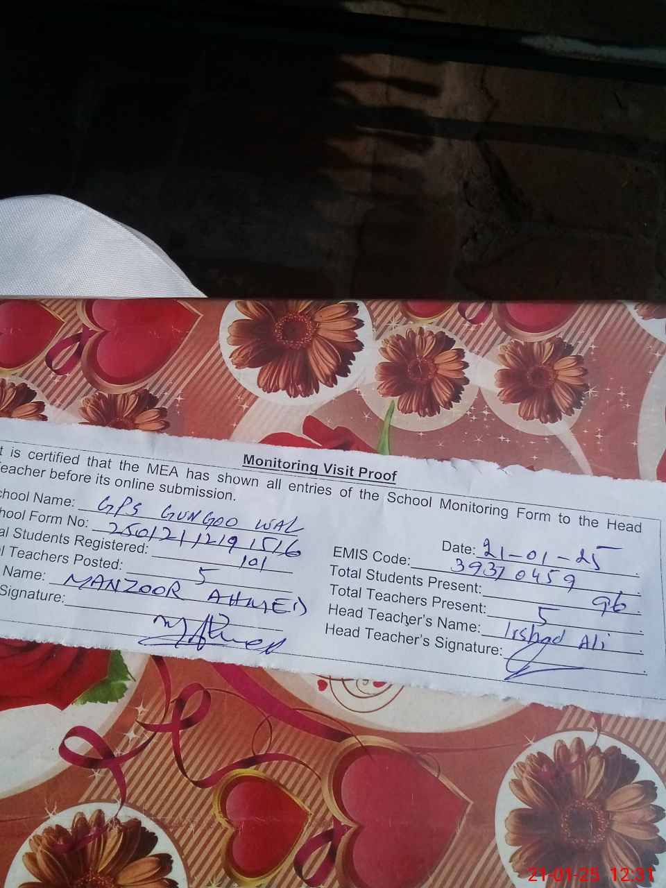| EMIS Code: 39310459 | Name of School: GPS GUNGOO WAL | |||
