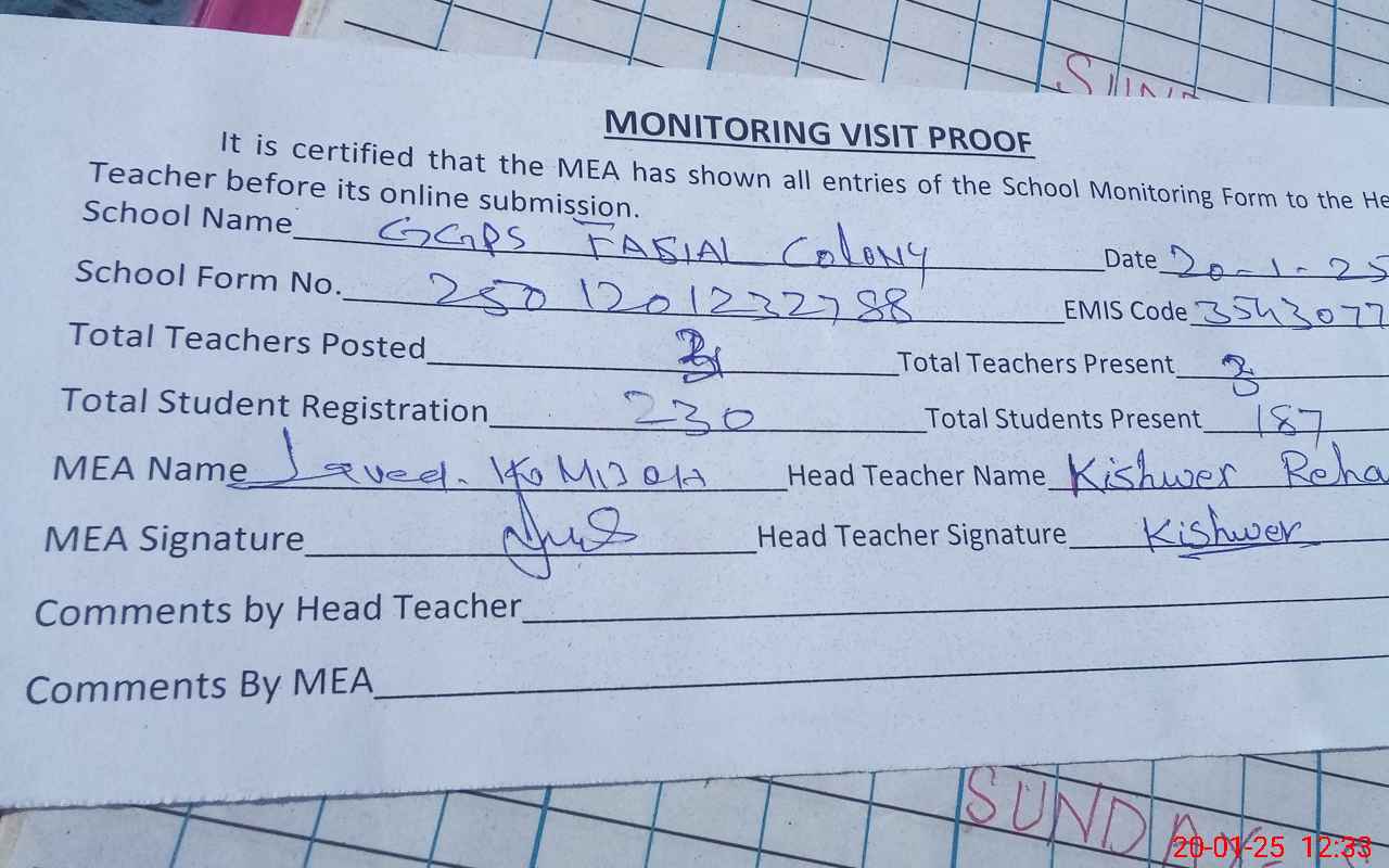 | EMIS Code: 35430775 | Name of School: GGPS FASIAL COLONY | |||