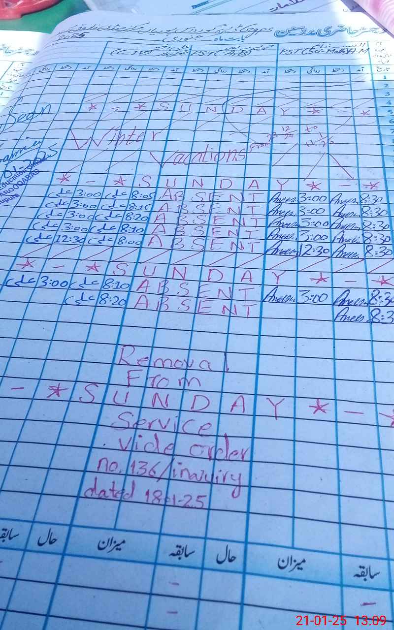 | CNIC | Full Name | Designation | R/C | Absence During Last Calender Month |