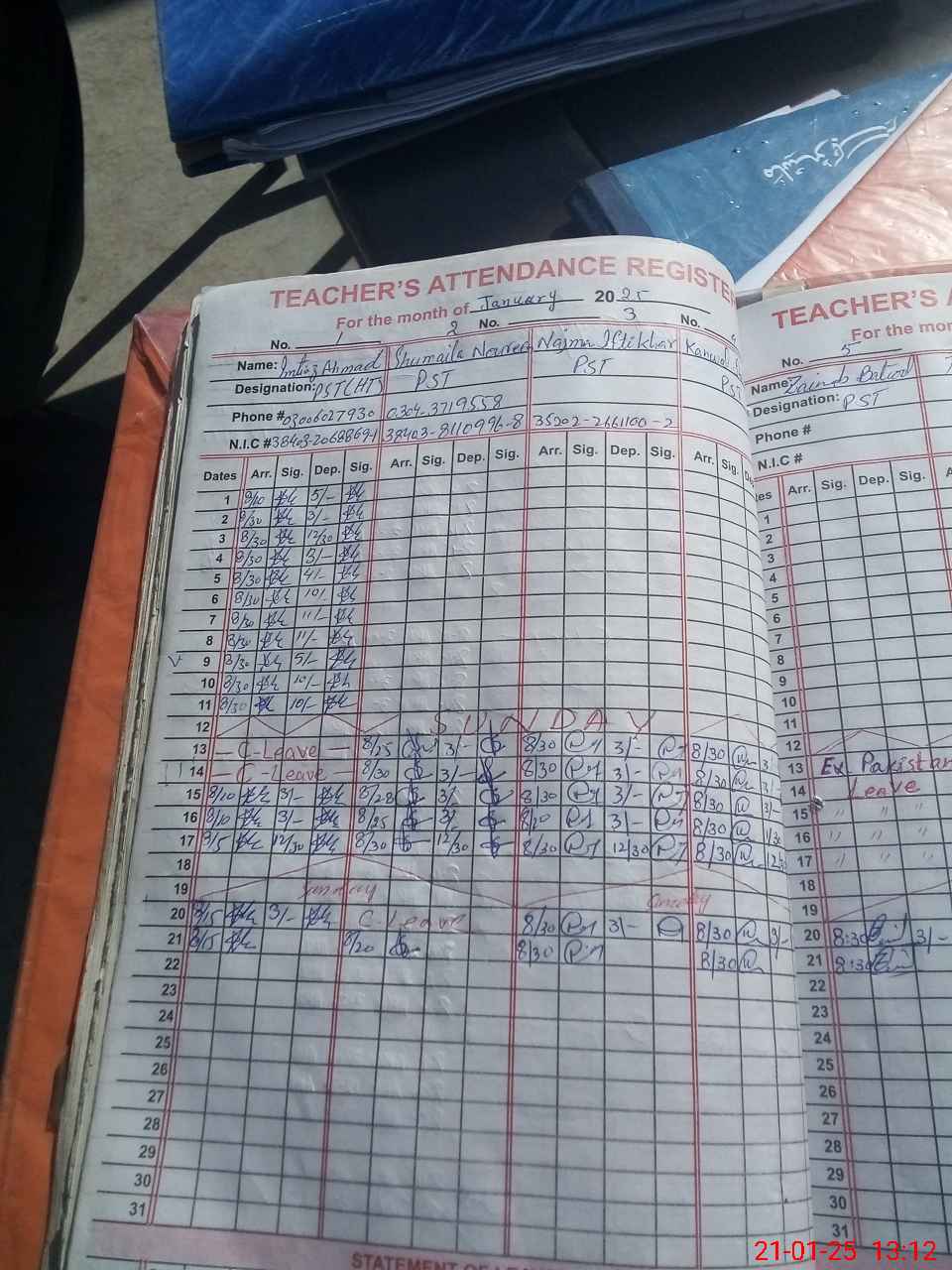 | CNIC | Full Name | Designation | R/C | Absence During Last Calender Month |