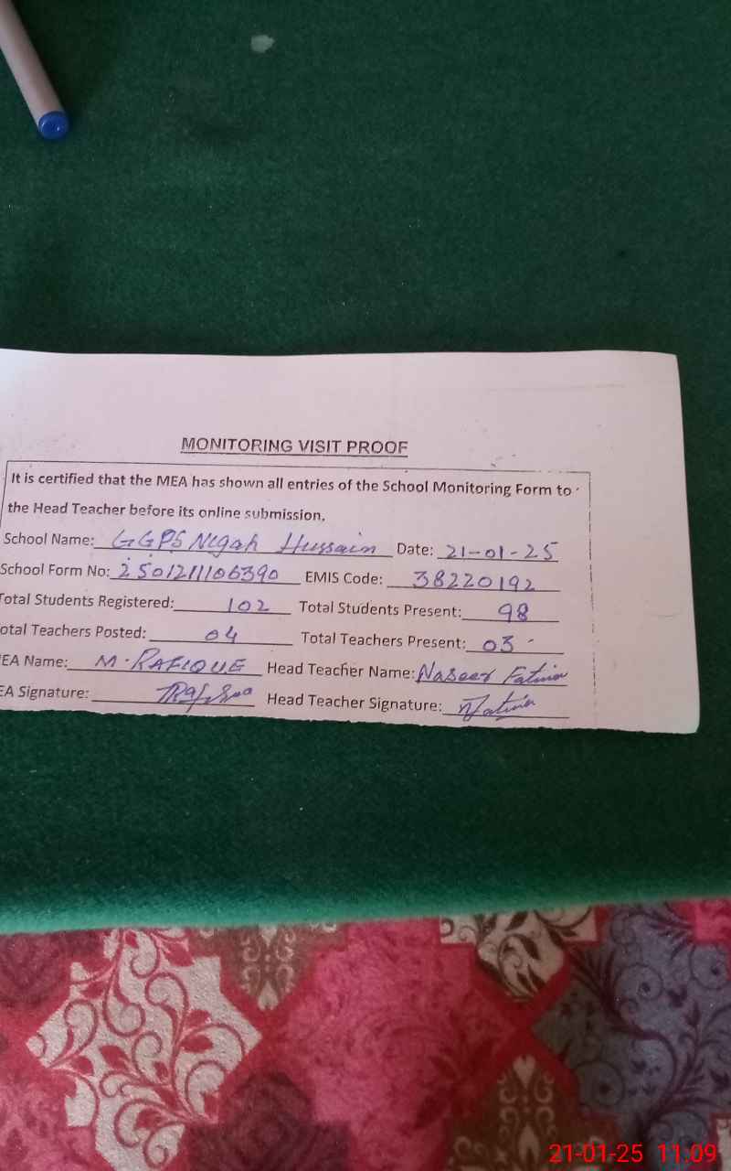 | EMIS Code: 38220192 | Name of School: GGPS NIGAH HUSSAIN CHAN | |||