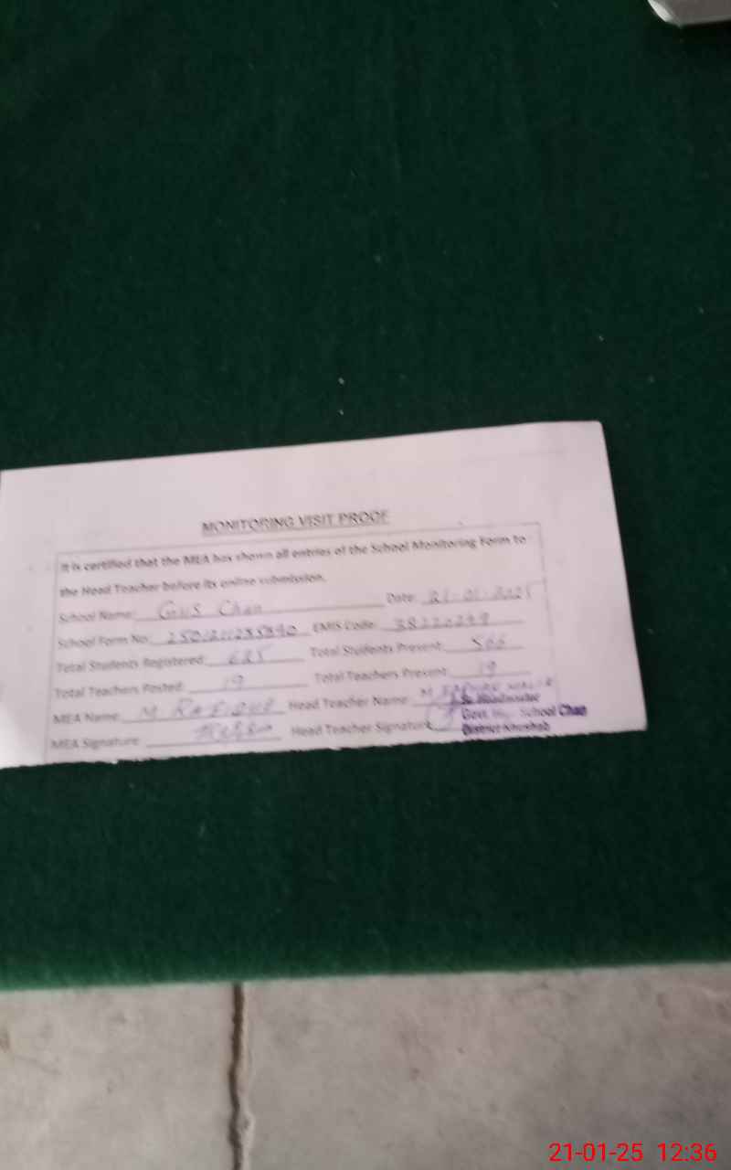 | EMIS Code: 38220249 | Name of School: GHS CHAN | |||